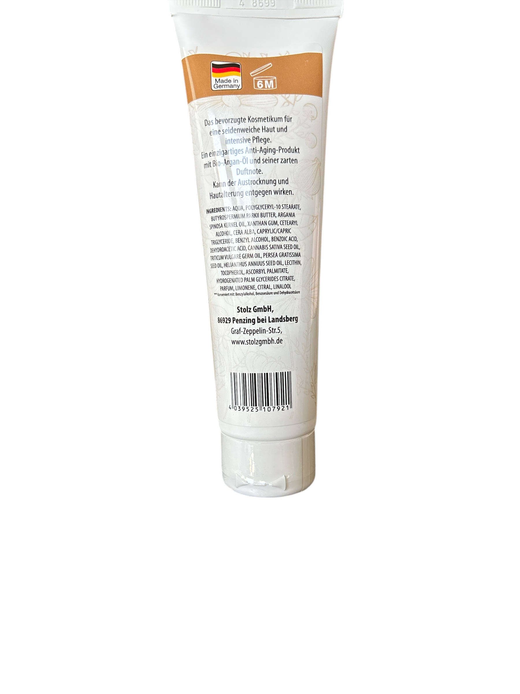 Dank der hochwertigen Inhaltsstoffe pflegt die Creme die Haut intensiv und sorgt für ein seidenweiches Hautgefühl. Ein einzigartiges Anti-Aging-Produkt mit Bio-Argan-Öl und einer zarten Duftnote. Kann der Austrocknung und Hautalterung entgegenwirken.